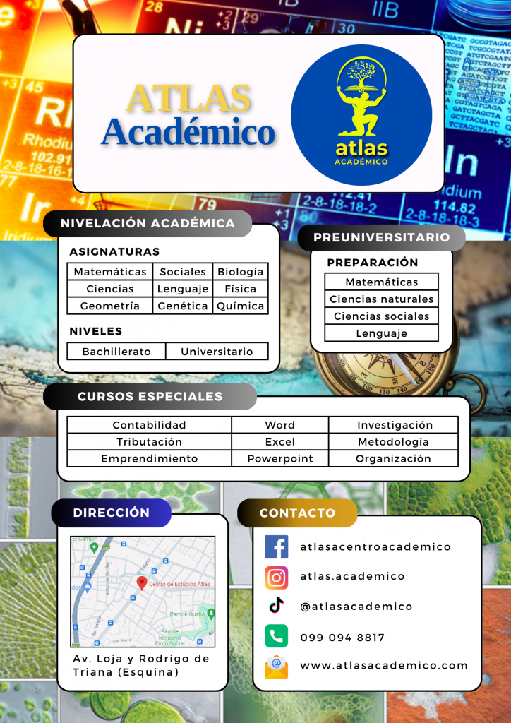 ATLAS académico Instagram Facebook TikTok WhatsApp YouTube Datos personales de contacto En el caso que usted requiera que ATLAS académico se comunique con usted por favor llene la siguiente forma Nombre *Correo electrónico *Teléfono de contacto *Mensaje *Estoy de acuerdo de enviar esta información *